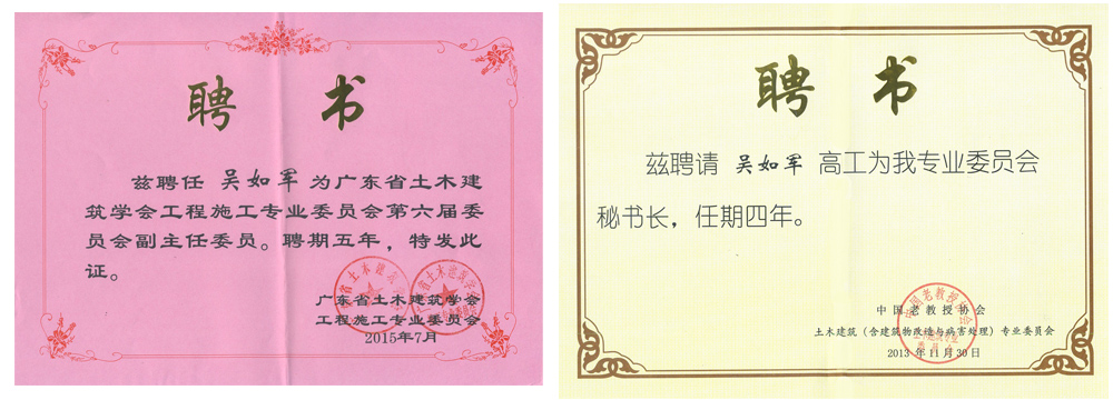現(xiàn)擔(dān)任社會職務(wù):廣州市第十五屆人大代表,廣州市白云區(qū)第十七屆人大常委會常委,廣州市白云區(qū)第九屆政協(xié)委員,第十屆政協(xié)常委;國家創(chuàng)新基金課題負(fù)責(zé)人,廣東工業(yè)大學(xué)、廣州大學(xué)研究生導(dǎo)師,廣東省工程勘察設(shè)計行業(yè)協(xié)會工程鑒定與加固分會會長,廣東省土木建筑科技創(chuàng)新杰出人才、優(yōu)秀科技工作者等,廣東省勘察設(shè)計行業(yè)科創(chuàng)卓越人才,中國土木建筑行業(yè)杰出貢獻(xiàn)獎,中共廣州市白云區(qū)委、廣州市白云區(qū)人民政府聘任的首屆“優(yōu)秀專家”等;中國老教授協(xié)會土木建筑(含病害處理)專業(yè)委員會副主任,廣東省土木建筑學(xué)會理事、專家組成員;廣東省土木建筑學(xué)會施工專業(yè)委員會副主任,廣東省土木建筑學(xué)會防水與加固專業(yè)委員會副主任、專家組成員,廣東省土木建筑學(xué)會地下工程專業(yè)委員會常務(wù)理事,中國致公黨廣州市第十三屆委員會委員、第十四屆常務(wù)委員,中國致公黨廣東省委會社會服務(wù)專委會副主委;廣東省貴州商會(聯(lián)盟)副主席,廣東省貴州畢節(jié)商會會長,廣州市工商聯(lián)常委、廣州市民營企業(yè)商會常務(wù)副會長、廣州光彩事業(yè)促進(jìn)會常務(wù)理事,廣州貴州商會常務(wù)副會長,廣州市白云區(qū)個私協(xié)會監(jiān)事長等。