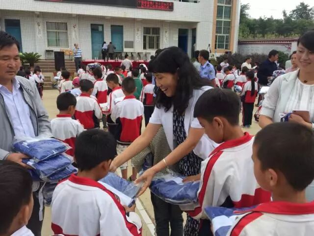 活動(dòng)上為牛場(chǎng)鄉(xiāng)的7所小學(xué)捐贈(zèng)1375套校服、書包、以及教學(xué)用品等。