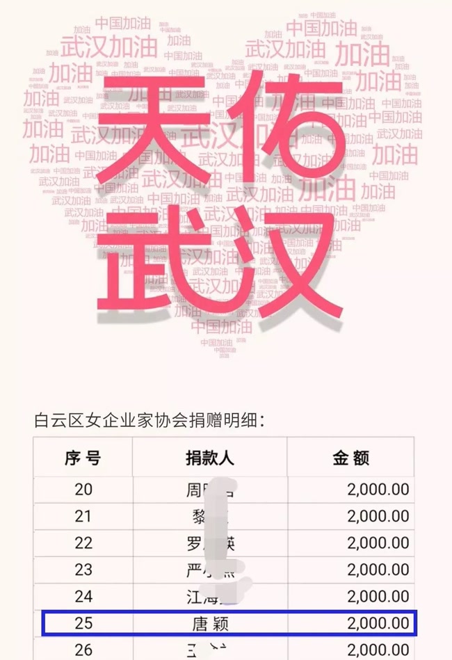 疫情初期公司副總經(jīng)理唐穎第一時間向白云區(qū)女企業(yè)家協(xié)會、九三學(xué)社及自己所住的小區(qū)個人捐款3500元;