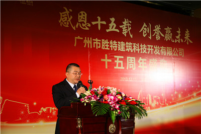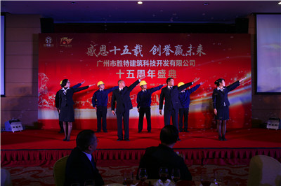 廣州勝特建筑加固“感恩十五載,創(chuàng)譽(yù)贏未來”十五周年慶典于2013年12月13日下午六點(diǎn)在廣州白云國際會(huì)議中心一樓清和廳隆重舉行,十五年櫛風(fēng)沐雨,十五年歲月崢嶸,歷史見證了廣州市勝特建筑科技開發(fā)有限公司的成長與蛻變。
