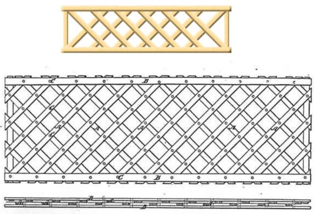 圖6 湯式網(wǎng)格(Ithiel Town 于1820年獲英國專利)桁架