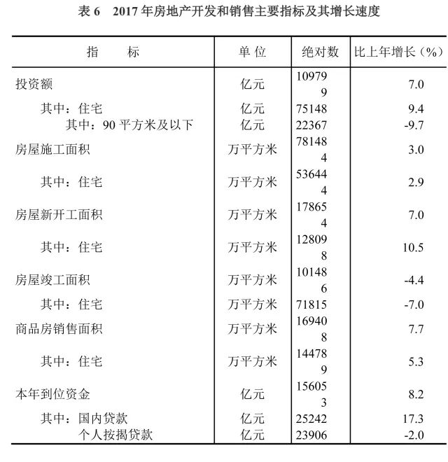 統(tǒng)計還顯示,2017年我國房地產(chǎn)開發(fā)投資109799億元,比上年增長7.0%。其中住宅投資75148億元,增長9.4%;辦公樓投資6761億元,增長3.5%;商業(yè)營業(yè)用房投資15640億元,下降1.2%。