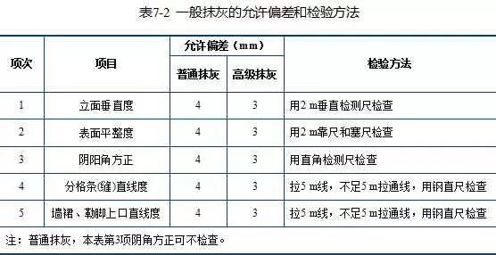 一般抹灰工程質(zhì)量的允許偏差和檢驗方法應(yīng)符合表7-2的規(guī)定。