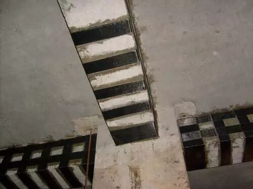 將抗拉強(qiáng)度極高的碳纖維用環(huán)氧樹脂預(yù)浸成為復(fù)合增強(qiáng)材料(單向連續(xù)纖維);用環(huán)氧樹脂粘結(jié)劑沿受拉方向或垂直于裂縫方向粘貼在要補(bǔ)強(qiáng)的結(jié)構(gòu)上,形成一個新的復(fù)合體,使增強(qiáng)粘貼材料與原有鋼筋混凝土共同受力增大結(jié)構(gòu)的抗裂或抗剪能力,提高結(jié)構(gòu)的強(qiáng)度、剛度、抗裂性和延伸性。